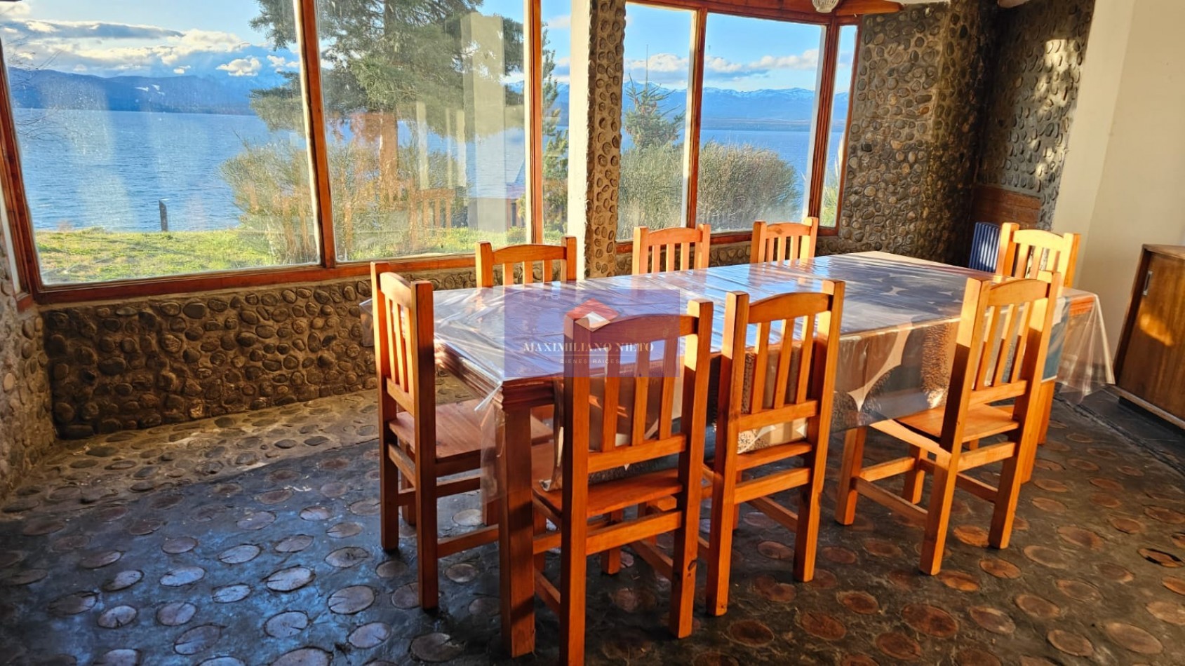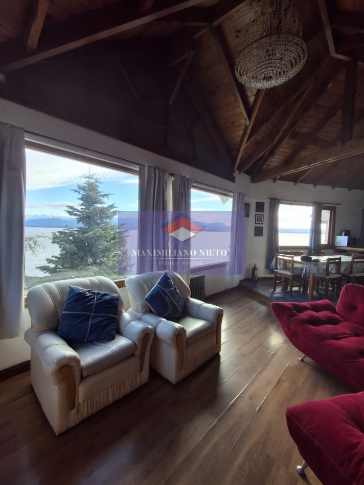 Hermosa casona con vistas increibles al lago, ubicada en un barrio residencial al ingreso de Bariloche, esta vivienda cuenta con tres habitaciones, dos baños, una cocina integrada al comedor y un living con estufa hogar que hacen de este espacio un lugar muy calido e ideal para una familia numerosa. ademas la propiedad cuenta con un quincho al cual se puede acceder por el interior de la vivienda o por la parte exterior donde se encuentra el jardin con hermosos rosales.