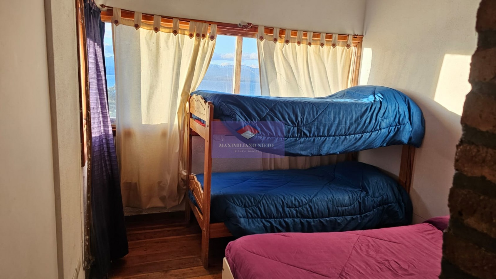 La segunda casa tiene 70 m2 , es en dos plantas , cuenta con dos dormitorios , cocina y baño completo, el ingreso a la misma es independiente de la casa principal. lo mas imponente es la vista plena al lago Nahuel Huapi.